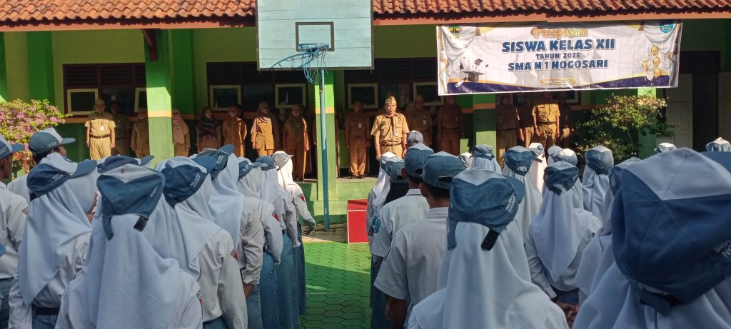 Pada hari Senin 19 Mei 2025 SMA Negeri 1 Nogosari mengadakan kegiatan Pelepasan secara Resmi Siswa Kelas XII Tahun Pelajaran 2024/2025. Dalam Kegiatan ini Kepala SMA Negeri 1 Nogosari Bapak Aris Kusmanto, M.Pd. melepas 213 Siswa. Dalam sambutan pelepasan beliau menyampaikan ucapan selamat kepada siswa sekaligus harapan kedepan agar siswa tetap menjaga nama baik sekolah dan sukses dalam meraih cita citanya. SMA Negeri 1 Nogosari Solusi Tepat Generasi Hebat
